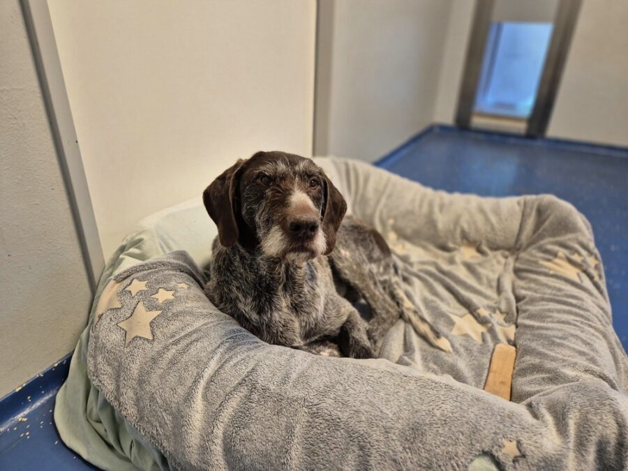 Herrn Müller haben wir aus einer Privatabgabe übernommen. Der werte Herr trägt den Namen voller Stolz 😉 Am Wochenende ist der 9 Jahre alte Drahthaarrüde bei uns angekommen und hat sich direkt gut eingelebt. Er hat diverse Hunde kennengelernt und für gut befunden. Zimmer ist auch okay, Essen schmeckt und die täglichen Ausflüge sind ganz nach seinem Geschmack. Menschen tritt er aufgeschlossen gegenüber, auch mit anderen Hunden hat er sich bisher bei uns verträglich gezeigt. An der Leine wird gepöbelt, wenn man selbst angeschnauzt wird. Das lässt er sich nicht zweimal sagen. Hier kommt es auf den Menschen am anderen Ende der Leine an, der korrigiert und das Verhalten unterbindet. Ein dufter Typ wie wir finden. Lernt ihn kennen, den Herrn Müller.